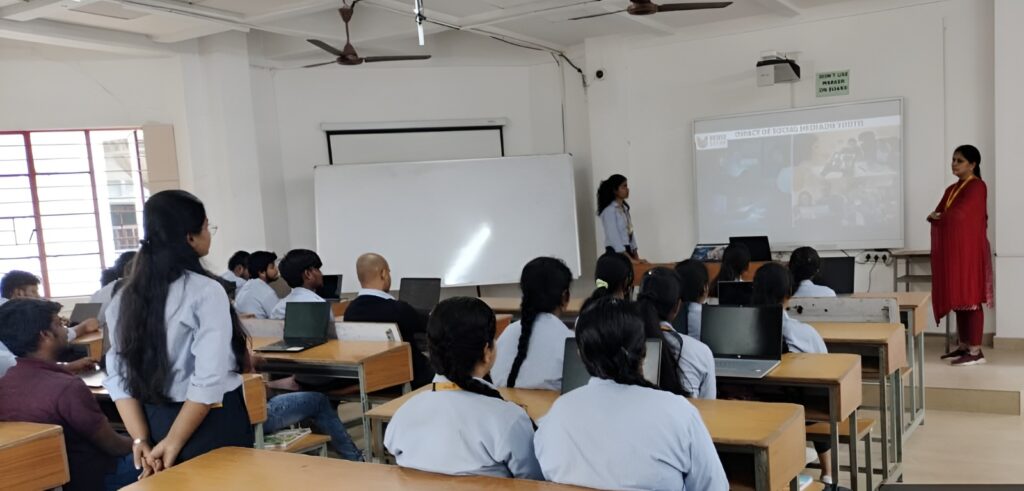 The session began with an introduction to the importance of digital awareness in today’s world. Ms. Jyothi explained how social media can shape the thinking patterns, sleep quality, and attention spans of young people. She also emphasized the importance of digital detox and peer support in managing online pressures. The activity was conducted in a simple and interactive manner, with real-life examples and group discussions that helped students connect the concepts to their own lives. The event highlighted the need for responsible online behavior, cyber safety, and the positive use of social media for academic and professional growth.