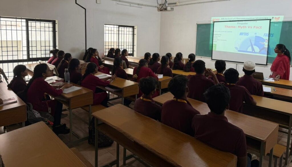 The activity was conducted in a simple yet effective manner. Dr. Hemalatha explained each myth clearly and presented the scientific facts in a way that was easy to understand. The interactive style of the program made it lively and ensured that students remained attentive and motivated.