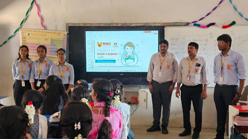 The Sports and Cultural Club of MBU organized an “Awareness on Health & Hygiene” program on 9th October 2025 at ZPHS School, Narsingapuram, near MBU. The event was held to educate and inspire students about the importance of staying healthy through proper hygiene. It was a well-planned initiative that brought together students and faculty in a meaningful way.