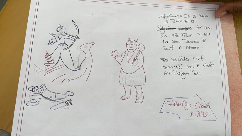 Through the painting, a participant captured the triumph and festivity associated with the Killing of Narakasura, the demon