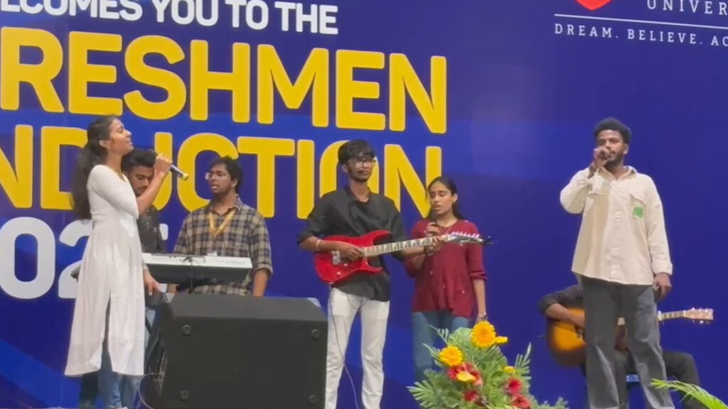 Under the successful coordination of Dr. P. Thejasree, Associate Professor and Dy. Dean of Student Affairs, the event brought together over 300 freshers, immersing them in an atmosphere of rhythm, melody, and movement. The event was well-organized and created a vibrant, welcoming atmosphere for the freshers, for whom seniors extended a heartfelt welcome through a colorful blend of music and dance performances, creating an atmosphere of joy, energy, and togetherness. It symbolizes the spirit of togetherness on campus.
