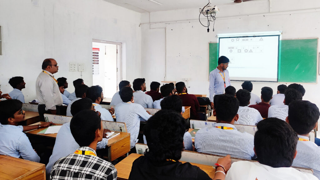 The event was coordinated by Dr. N. Anantha Krishna and Dr. S. Lakshmi Narayana, both associate professors from the Department of Mechanical Engineering, along with student coordinator Mr. M. Athik from the final year. Their guidance and energy helped make the session smooth, interactive, and impactful. Over 60 students participated enthusiastically, including those from II B.Tech. I Semester (Mechanical and Civil) and IV B.Tech I Semester (Mechanical). Students were grouped to encourage teamwork and idea sharing.