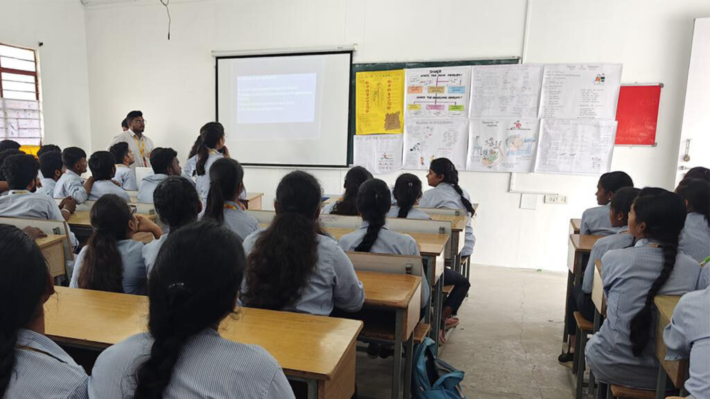 The activity was conducted in a structured and interactive manner. Ms. Priya explained the first-aid protocol step by step, beginning with ensuring scene safety, checking responsiveness, and monitoring breathing. Demonstrations included positioning the patient flat, elevating legs to improve blood flow, loosening tight clothing, and maintaining airway support. Students also worked in groups to prepare colourful charts on causes, symptoms, emergency steps, types of shock, and dos and don’ts during an episode. These charts were displayed in the classroom, making the learning process visual and collaborative.