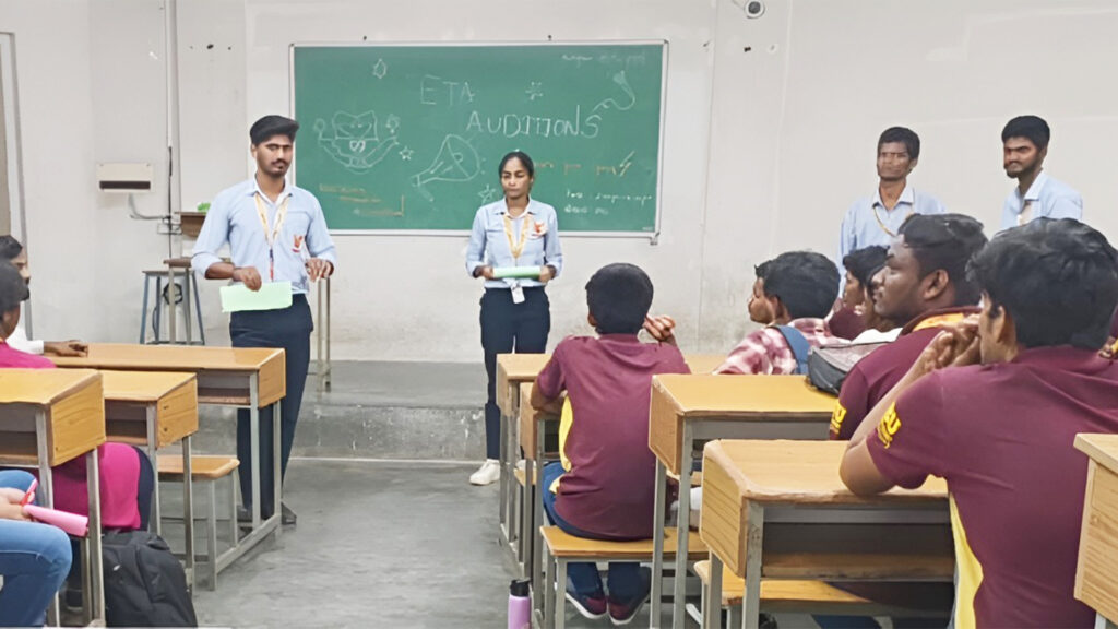 The event was coordinated by Dr. Rajasekar Thota, Associate Professor, with guidance from Dr. M. S. Sujatha, Head of the Department. A total of 36 students participated with great enthusiasm. Mr. J. Ganesh, the student association coordinator, along with III-year student volunteers, helped in organizing the event smoothly. The students gave short speeches on various topics and performed with confidence and clarity.