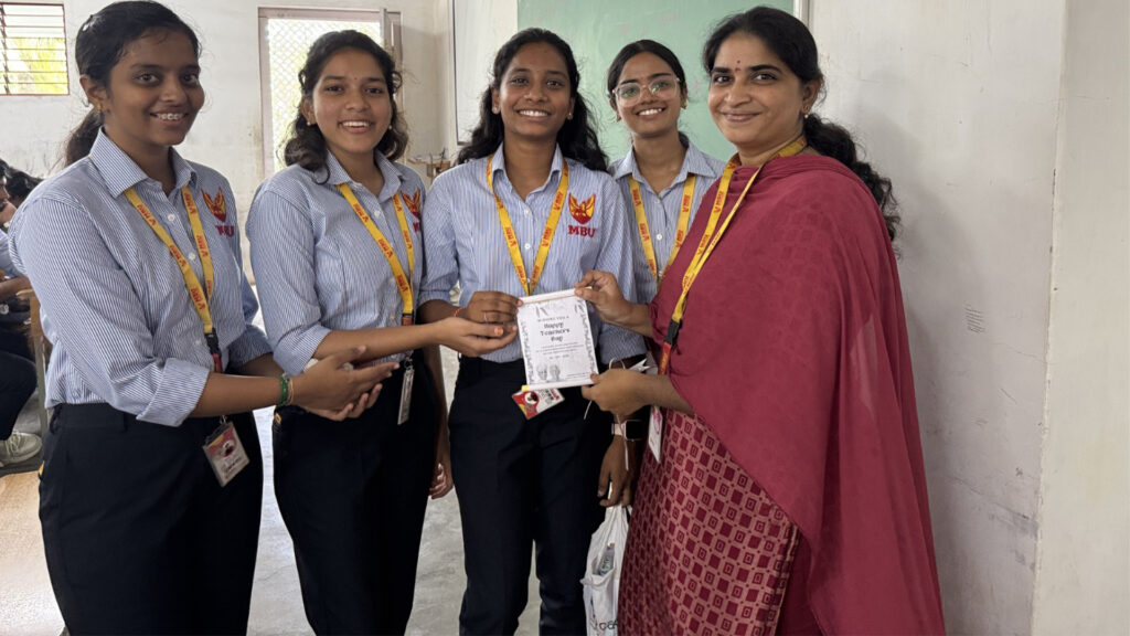 The Sports and Cultural Club of MBU organized a heartfelt event titled “Guru Vandana 2025 – A Tribute to Teachers” on 5th September 2025. The program was held in the spirit of Teacher’s Day and took place in a warm and welcoming setting on campus. It was a special moment where students came together to honor and appreciate their faculty members through creative and meaningful gestures.