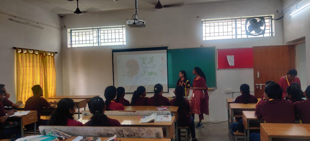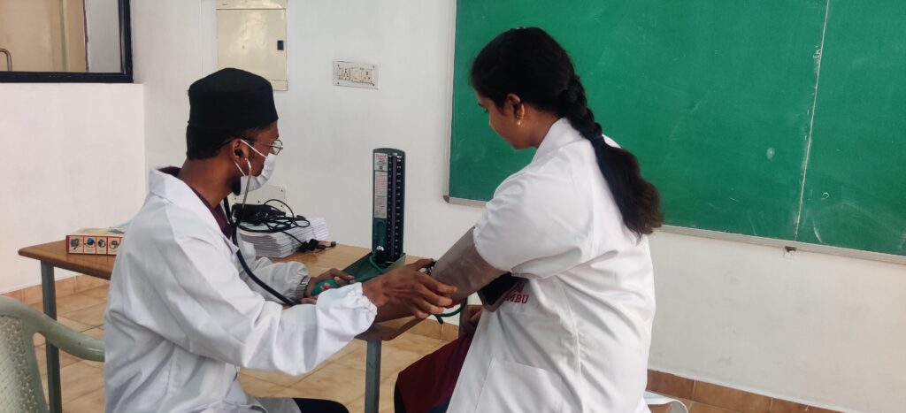 To encourage active participation and deepen understanding, a quiz on hypertension was conducted. This activity helped students test their knowledge and reinforce key concepts related to the condition. Additionally, students were given a hands-on experience in blood pressure measurement using sphygmomanometers. This practical demonstration emphasized self-awareness and the importance of regular blood pressure monitoring.