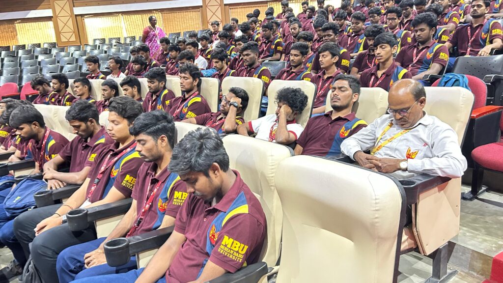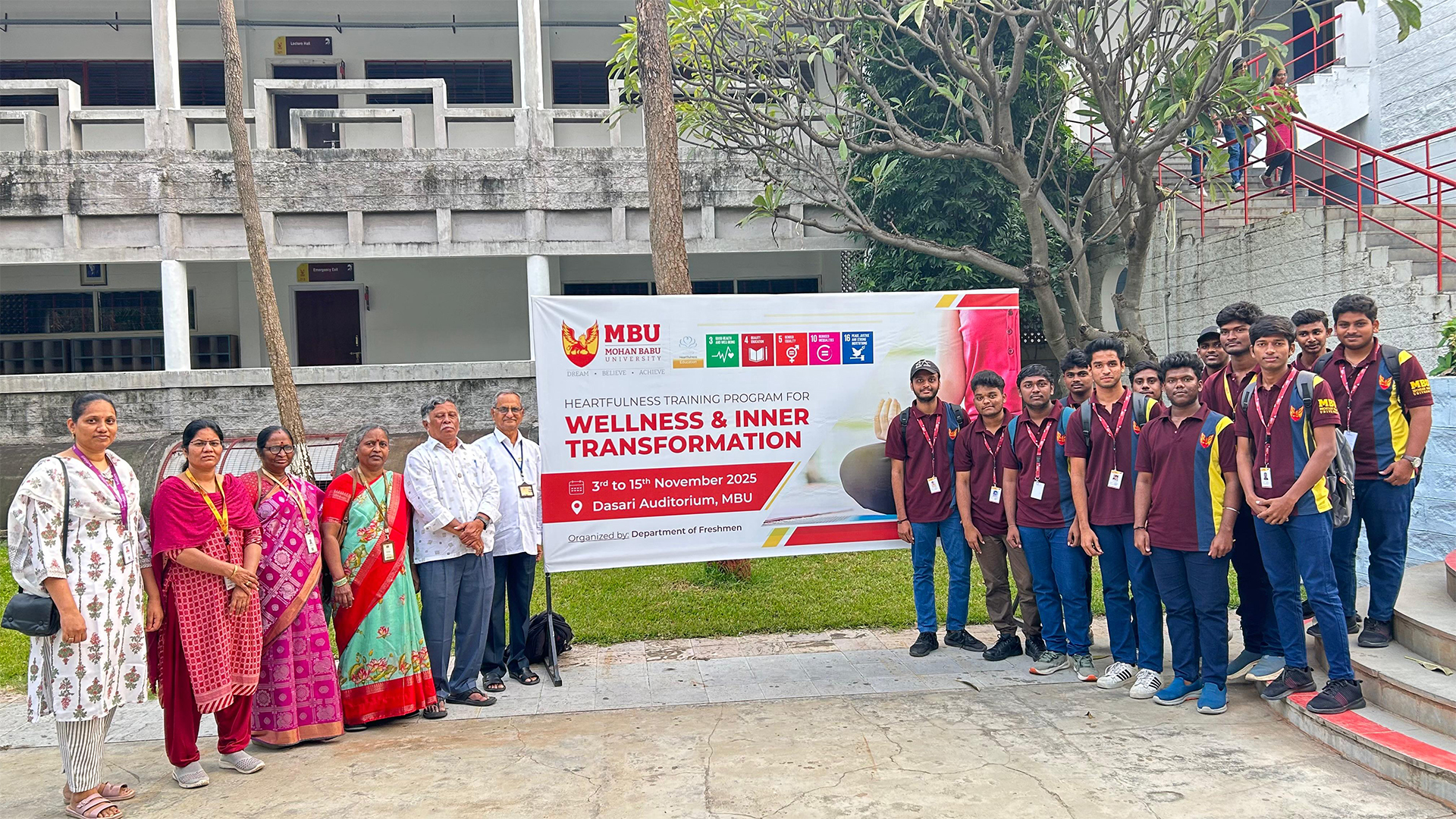 The Freshmen Department of the School of Liberal Arts and Sciences, Mohan Babu University, successfully organized a Heartfulness Meditation training programe titled “Wellness and Inner Transformation” from 3rd to 15th November 2025. The sessions were held on the campus of MBU in the Dasari Auditorium and conducted by the experienced trainers of the Heartfulness Education Trust (HET), Heartfulness Meditation Centre, affiliated with the Shri Ram Chandra Mission, Tirupati. The event brought together students, faculty, and senior Abhyasis of the Centre in a calm and welcoming environment, encouraging everyone to explore the benefits of meditation.