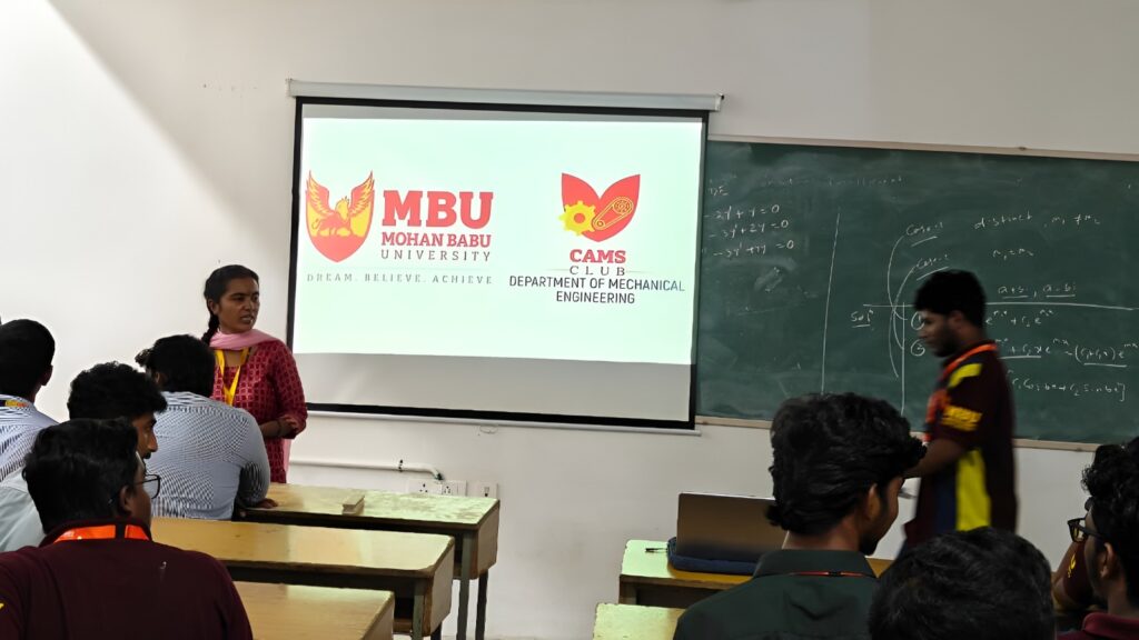 The event was coordinated by four enthusiastic first-year students—Mr. T. Vrithika, Mr. M. Sreedhar, Mr. B. Harishwar Reddy, and Mr. K. Tanvi Sudarshan—under the guidance of Dr. D. Gowthami, Assistant Professor and CAMS Coordinator. The event saw active participation from I B.Tech Mechanical Engineering students. The coordinators did a wonderful job in planning and conducting the event smoothly. The participants were equally enthusiastic and showed great interest throughout the session.