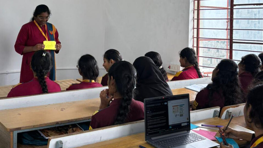 The contest was coordinated by Ms. S. Vasiha Anjum, Assistant Professor in the Department of Biological and Chemical Sciences. A total of 17 students actively took part in the competition. Each participant prepared colourful A4 flash cards to highlight a chosen biology topic. The students performed with enthusiasm, presenting their ideas clearly and confidently. Their ability to explain complex concepts in a concise manner reflected both preparation and creativity.