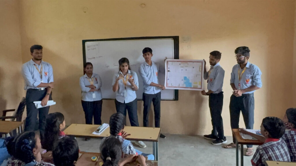 The Rural Development Club of the Department of Electrical and Electronics Engineering organized an interactive outreach program titled “Smart Energy Saving Dormitory” on 17th October 2025. The event was held at Sri Vinayaka Vidya Mandir, A. Rangampet, from 10:00 a.m. to 11:00 a.m. The session brought together 30 enthusiastic school students from classes 5, 6, and 7, creating a lively and curious atmosphere.