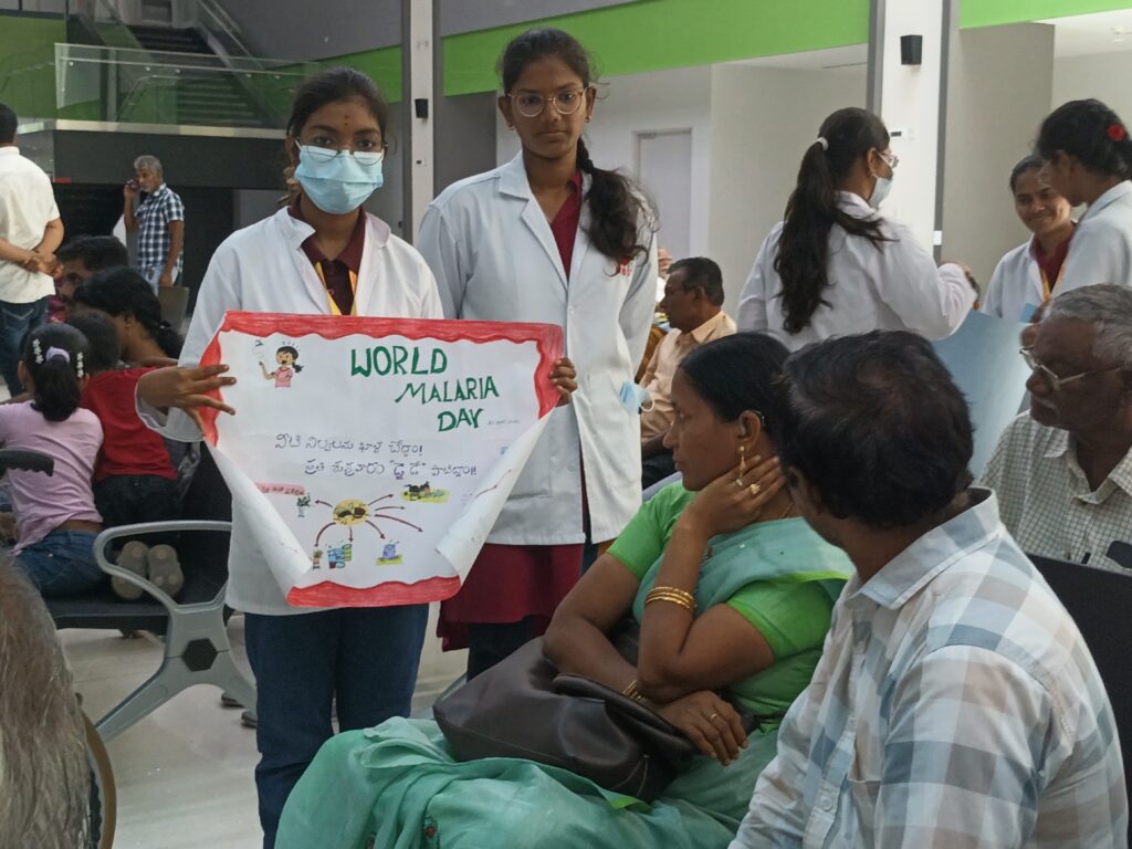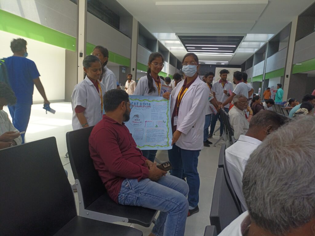 The Cosmetics Club of the School of Pharmaceutical Sciences, MBU, organized an awareness program at AMARA Hospitals, Karakambadi Rural, Tirupathi, in observance of World Malaria Day on April 25, 2025. The event, held from 10:00 AM to 12:30 PM, aimed to educate patients on malaria fever, including its diagnosis, prevention strategies, and lifestyle modifications to reduce the risk of infection.