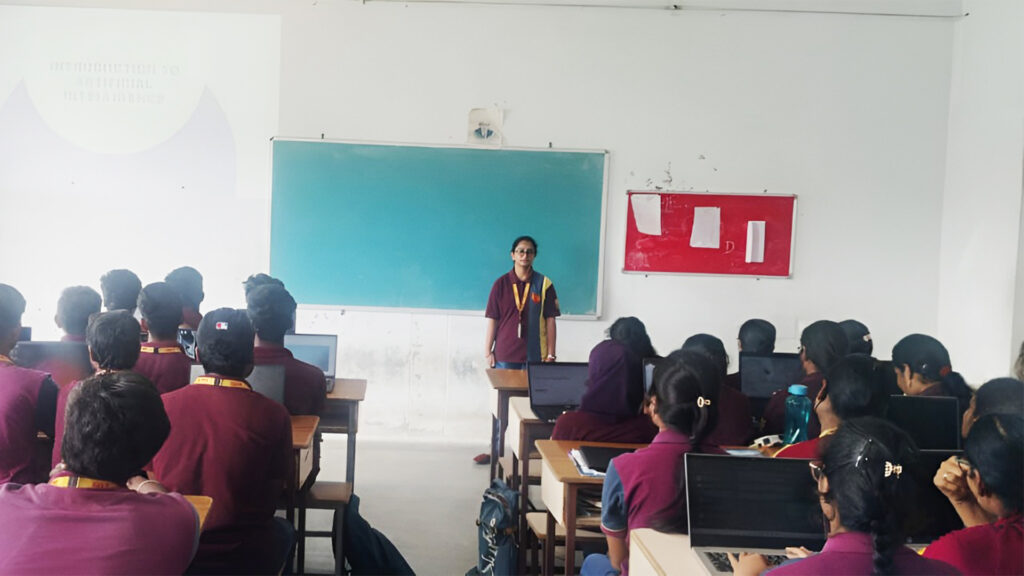 The Tech Know Club of the Department of Computer Applications organized an engaging event titled “Tech Talk on AI Tools and Technologies” on 19th September 2025 at MCA Block. The session brought together students to explore the fast-changing world of artificial intelligence. The event created a lively space for learning, sharing, and imagining the future of technology.