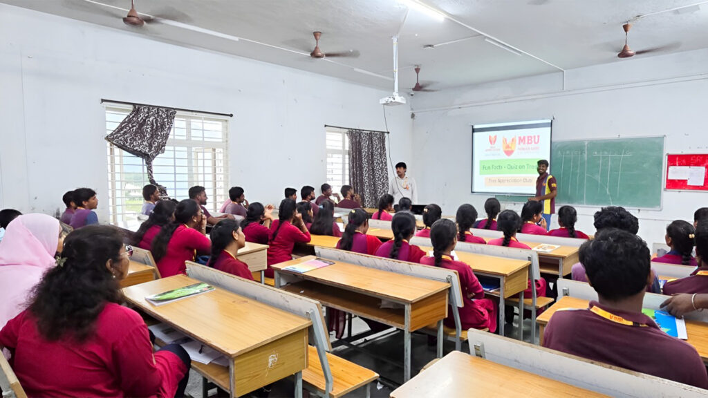 Dr. K. Mallikarjuna, Assistant Professor and Faculty Coordinator of the Tree Appreciation Club, guided the event with great enthusiasm. A total of 45 students participated actively, showing keen interest and excitement throughout the session. They answered questions with confidence and curiosity, reflecting their growing awareness and appreciation for nature.
